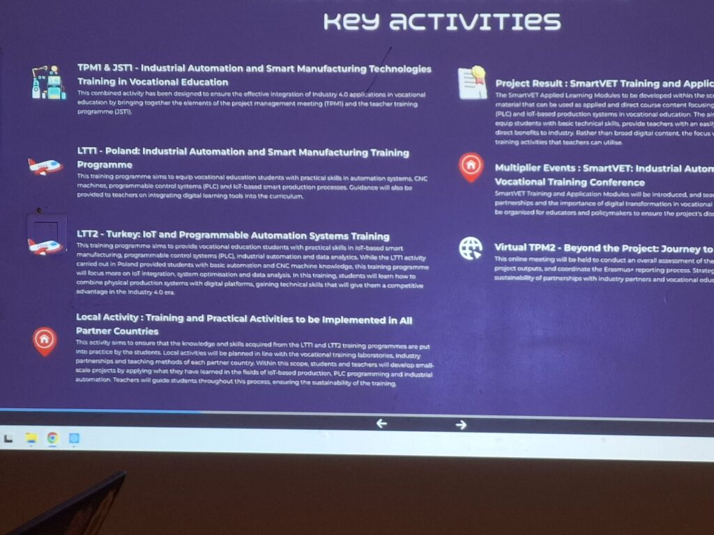Kulminacyjnym punktem projektu będzie wizyta przedstawicieli szkół partnerskich w Lęborku, zaplanowana na kwiecień 2026 roku. To dla nas doskonała okazja do zaprezentowania efektów wdrożenia nowych technologii oraz zorganizowania wspólnych warsztatów dla uczniów i nauczycieli. W ramach wizyty nasza szkoła jest odpowiedzialna za sektor automatyki przemysłowej – przygotujemy warsztaty z wykorzystaniem sterowników PLC oraz technologii CNC. Wydarzenie to pozwoli naszym uczniom na bezpośredni kontakt z młodzieżą i nauczycielami z innych krajów europejskich.