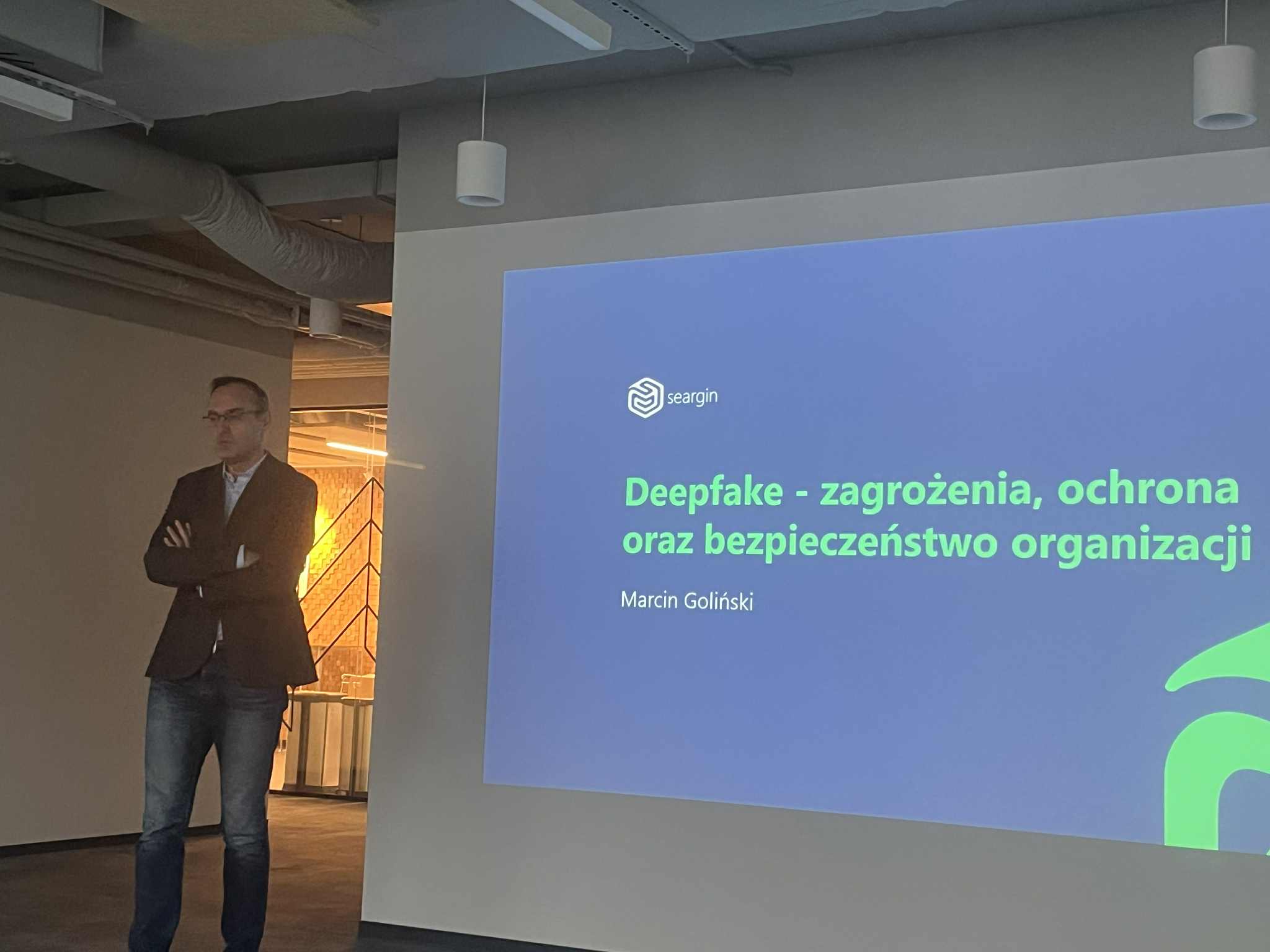 Niejako „na deser” odbyła się część poświęcona cyberzagrożeniom, w szczególności deepfake’om. Uczniowie zobaczyli, jak zaawansowane mogą być współczesne narzędzia AI, a jednocześnie otrzymali praktyczne wskazówki dotyczące ochrony przed zagrożeniami w sieci.